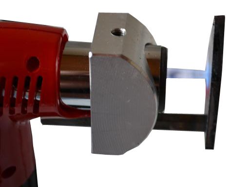 Chalumeau équipé d'une panne métallique chauffée par une flamme permettant d'écraser et de souder les pions de fixations sur les grilles de pare-chocs et de calandres.