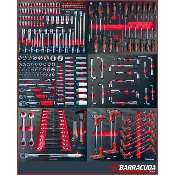 Servante d'atelier 8 tiroirs 6 outillés BARRACUDA XXL rouge contient :
