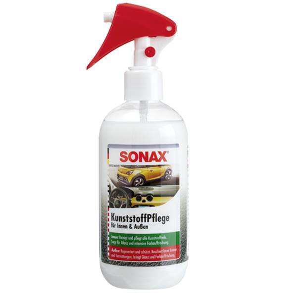 Soin pour plastique intérieur et extérieur SONAXIntérieur : nettoie et protège tous les plastiques (tableau de bord, portes…) Application simple et rapide pour des surfaces brillantes, sans rayures. Rafraîchit les couleurs.Extérieur : rajeunit, protège et conserve tous les composants en plastiques non peints (pare-choc, poignée de porte...). Efface les rayures fines.